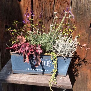 一番お気に入りの寄植え💜 いっぱい写真撮りました〜iPhoneで(笑) 写真で伝えるって難しいですね😅 カンパニュラが咲く頃が楽しみ✨