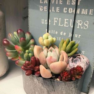 小さい寄せ植え♡ 初めてネルソル使いましたꈍ .̮ ꈍ これで倒れても…だ〜いじょ〜ぶ♪w 奥のバナナみたいな子、シワシワ(笑) 売れ残っちゃうぞ😆