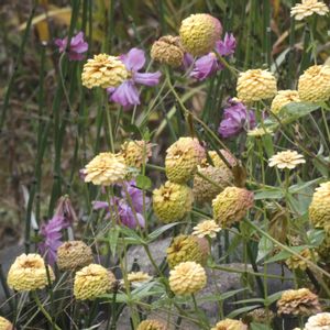 「ジニア」 こぼれダネから芽吹き、一本の茎からまだまだ、次々と小さなお花たちが咲き始めています。 百日以上も咲き続けているなんて、ホントに強いお花です。