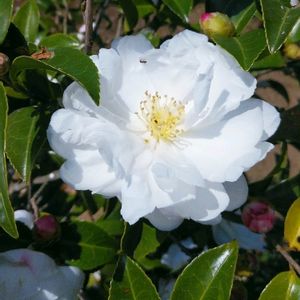 🏷日曜日は日本を感じる和の花 🏷日だまりの日曜日 🏷純白マニア 🏷白い貴婦人✨ サザンカ(山茶花)💟 おひさま🌞が当たるこの垣根 白い🤍八重咲きの花が 清楚で綺麗〜(*˘︶˘*).。*♡✨✨ 今日の散歩中に見つけた~🎵🤳