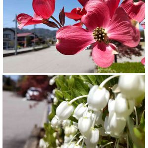 私の方が…♪ はじけてるよ‼️ こんなにのり出してる!✨ みてみて! だって✨✨✨✨ いくら飛び出したくても お行儀良く 剪定っていう感じ? きちんとなるべく されちゃってるし…♪ 無理無理 飛び出しちゃうなんて 箱入り娘の✨ 貴方には出来っこないわよ🎵 とか…🥺 聞こえて来そうな 飛び出し加減の ハナミズキと きちんとさんの ドウダンツツジさんの お昼の様子 picにするまでは、…🥺 そんな会話思いつきも しませんでしたが、 会社の玄関前の エリアに植わっている………… 驚くほど紅い ハナミズキと 白くて綺麗に剪定されていて 本当に沢山の花着けた シロドウダン♪ 対照的な🎵 様子が愉しいですよ