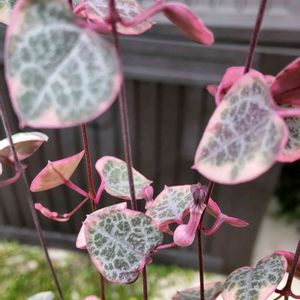 諦めきれなくて………… ハートカズラ 二週続けて 一時間かかる グリーンのお店に 連れていって貰いました❗️ 赤いとこ 中心に パシャリ📸 お💠があります…♪ 長いのでカットして挿し増し 洗濯の竿に掛けてます🎵 冬越しも🎵同じ室内の竿に(笑) 予定しています🎵