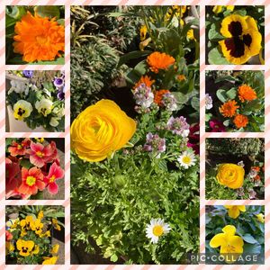 🏷日曜ビタミンカラー♪ 🏷ビューティフルサンデー 🏷日だまりの日曜日 参加します💛❤️🧡💚 先日HCで半値だった2つの寄せ植え お手入れして上げたらまだまだ綺麗🎶 蕾もいっぱい❣️ 日本🇯🇵🥌 応援してます📣📣