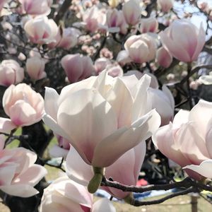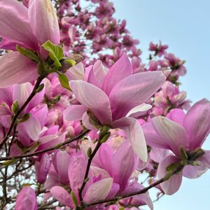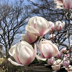 更紗木蓮(サラサモクレン) 白木蓮ではないですよ‼️ 淡いピンクが✊✊✊ 管理の人が素晴らしいですね❗✌️下枝を剪定しないで大事にしてます 💐大木の花の撮影はいつも大変です😉有り難うございます
