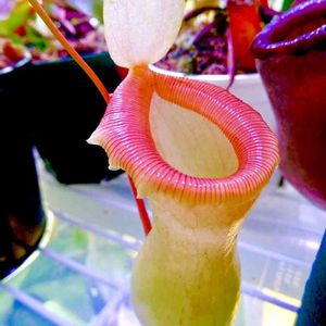 ネペンテス ラフレシアナトリカラー この前ひらきかけだったピッチャーが完璧に開きました。 「あんた!この前内緒やゆうた話、みんなに話したやろ!!」 怒ってるみたいです