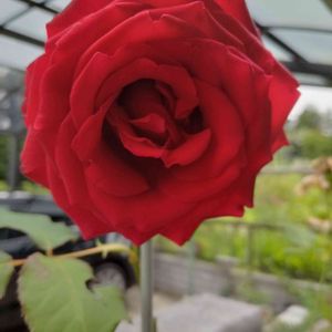 真っ赤なバラ、咲きました... あれっ、そんな歌があったような カイガラムシ被害で隔離されていたのですが元気に🌹咲いてます う、ここで気を抜かず、ハブラシハブラシと