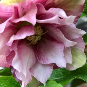 クリスマスローズ オリエンタリス系 ダブル 地植えの八重咲きのクリローサンも、 咲き始めました(* ˘͈ ᵕ ˘͈ *)✾ 花びらの1枚ずつに…… ピンク色の縁が入ってて…… お気に入りです。.:*ฺ✤ฺ