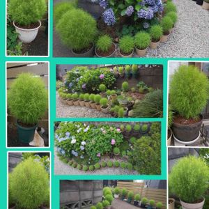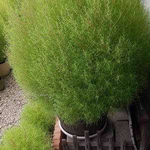 コキア 一番大きな子 花も咲き出した 鉢 380mm 大きさわかりますね 高さ900mm 幅 900mm 🌱🤗 もう大きくならなくてもいいよー 花が咲きかけたのが咲いてから 実を付けます 紅葉後半くらいに種が落ち始めますので 私は種が落ちる前に容器にそーと揺すって落とします 落ちなかった実は 枯れてから 抜いてふるいます 実を回収