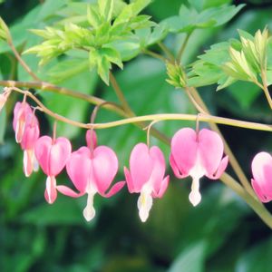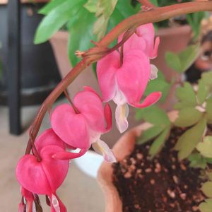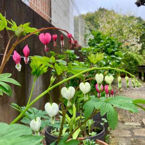💗華鬘草(ケマンソウ)④ 可愛い💗ハート型の花。 名前の由来は、垂れ下がった花♡ 花の形の面白い💗 膨らんで2枚の花びら様が外に跳ねてくるようだ。 白いのは見た事がありますが…ピンク色はその場で初めて出会いました✿︎˘︶˘✿︎ ).。.:* ♬︎*゜ 東京ディズニーランドにて