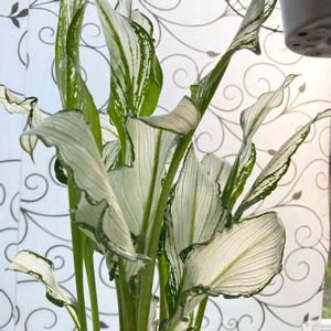 カラー フローズンクイーン 日本で1人しか作っていない希少品種 斑入りで透けた感じですが、葉は以外と硬く珍しいカラーです😊 久しぶりに馴染みのお店に行って見つけてきました😊