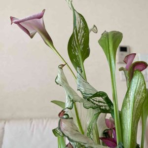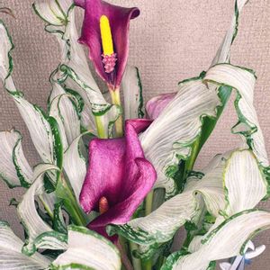 カラー フローズンクイーン❤️ 出会ってしまった😊 カラーとは相性悪いってわかっていたけど引き寄せられてお連れしてしまった「氷の女王」様は、透き通るような白班入りの葉とワインレッドのコントラストがステキすぎる~😍😍