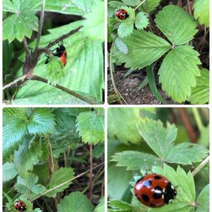 こんばんは☺️ ワイルドストロベリーに🍓🍃 てんとう虫さんが🐞 可愛い❣️☺️