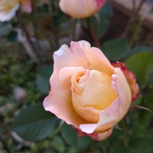 昨日のお話ですが… やっとモーリスユトリロさん咲きました🌹 3枚目は朝方の写真 で、地植えその2のアプリコットカラー?的なバラも咲きました! なんか桃みたいな色してるね🍑✨そしてでかい… 花13cmくらいあるやん?