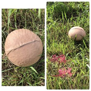 10月15日はきのこの日🏷️を見つけました🤭 田舎の畑の真ん中に、完璧な姿のきのこ🍄🟫カラカサタケの仲間のようです🤔
