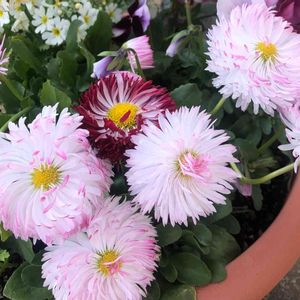 帰りに、ケーヨーD2に寄り道。 寄せ植えに使えそうなお花を買い足しちゃいました😳 チロリアンデージー (これは安かった) ダブル咲きのマーガレット 前から検討してた宿根ネメシア ヒューケラ フリンジチョコ 明日植え替えようかな~と思ったら、明日は荒天らしい😂 タイミング間違えたかも…😅