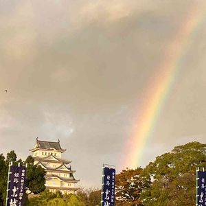 姫路城に虹🌈 昨日夕方4時頃です。お城の近くで仕事をしている友人が撮ってくれました 何かいいことありそう🎵