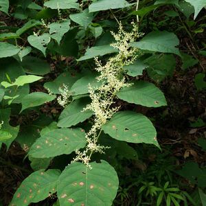 ゴンパッチの花~🎵一般的にはイタドリと呼ぶ方が多いのかな? この様にヒョロヒョロなヤツは犬ゴンパチと呼んであんまり美味しくないっぽい。まぁ春にしか食べないけども~。