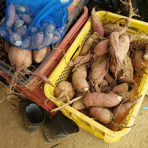 今年の収穫品。サツマイモ♪コンテナ4杯分。 一月寝かせておくと甘くなって食べられる様になる。