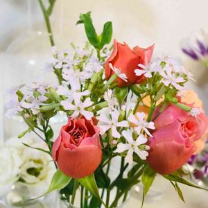 スプレーバラとシレネ サクラコマチ🌸 色合いが春らしくてルンルン気分☺️ *花言葉* ピンクのバラ→感謝、温かい心、輝かしい、気品 サクラコマチ→偽りの愛、未練、しつこさ、わな