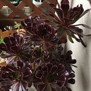 😊ツヤツヤ✨うっとーり。 これは葉の長いほう。 そろそろ始めないと時間が足りないと気持ちばかり焦り、お手入れ待ちさん達を玄関ポーチに移動しました。 "黒法師"の名前はようわからん。 真っ黒法師がAtropurpureumと先生に聞いたけど、この子の方が真っ黒な気がするし・・・🙄