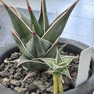 サンセベリア。 ①ピンギキュラ。👑 少し浮いたような独特の形が美しくクイーンサンセベリアと呼ばれている。ようやくいい株に出会えたね。 ②シルバークラウン👑 購入時 造花かと思う程の整い感が 気に入ったので これだけは子株と切り離すべき。左が親株。 ③サムライドワーフ。 少しづつ旋回している。初めて子株がツーンと出てきた(左のつーん) サンセさん、何年前か分からんくらい トラノオはもう20年以上うちにいて 植物沼の第1歩だった。多分🤔 生育旺盛でかなり広がるので 今はサンセさんは、本当に気に入ったものを年1個買うことに決めている。