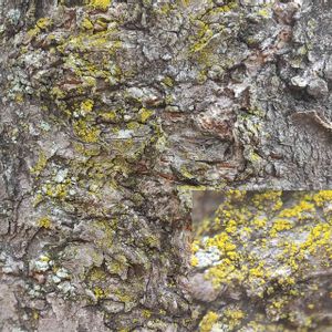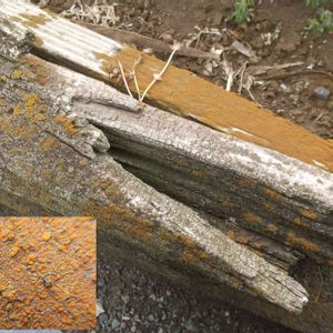 珍しく木にも生えていたコウロコダイダイゴケさん🟠🟠✨💕 ※これは苔ではなく地衣類です。