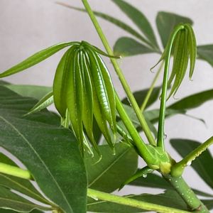 パキラの新芽です🌱 やわやわ、ツヤツヤで可愛いのですが、春先になると、ペタペタの樹液が出てきます。 最近GSで、この樹液が、花外蜜腺(かがいみつせん)である事を知りました🧐 花外蜜腺とは、アリをこの蜜で誘因し、他の昆虫による葉などの食害を防ぐ役割があると考えられているそうですね。 植物もそんな方法で自分の身を守っているんですね😊