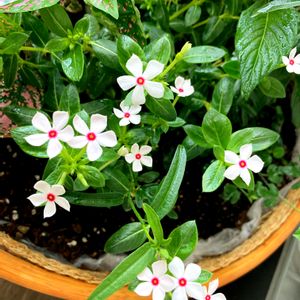 ニチニチソウ ミニナツ ストロベリー♡ お花は小さいけれどシャキッとしていてパンチがあります👀 いつもなら寄せ植えにするところですがこの子は単植えにしてみました🪴 伸び伸び育ってね〜