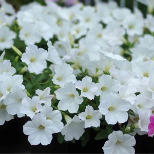 ランドスケープ ペチュニア 右手前から 桃色吐息、おゆきちゃん、さくらさくら 台風が近づいてますね。 まだ小雨ですが、降っています。