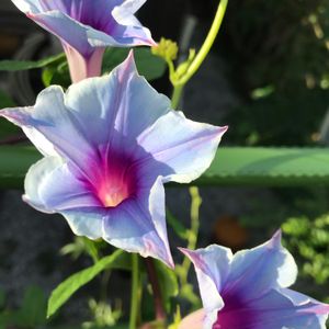 今日の庭から キキョウ咲きの朝顔、もう一色は濃いピンクでした😉 普通の朝顔より小ぶりなので、アップで撮りました☺️