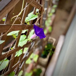 トレリスの裏側にお顔を出してしまった桔梗咲きアサガオ