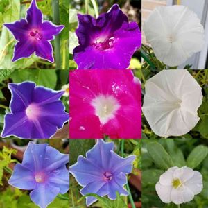 今日のお花❣️ この夏、一袋のミックス種からたくさんのお花を咲かせてくれたアサガオさん🌺 毎朝、今日はどんな花が咲いているのかな?と庭へ出るのが楽しみでした🥰💕 今朝も、雨に濡れながらもたくさんお花を咲かせていました💖 このpicは、そんなアサガオに感謝の気持ちを込めて、今年咲いたアサガオのまとめです🌺