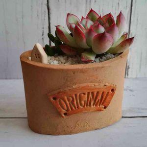 エケベリア系1個植え😀 鉢はテラコッタ陶芸で作りました💝 イベントに持っていったらお嫁入りが決まりました😅