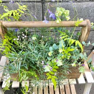 久しぶりの寄せ植え教室🌿 いつもは地味っぽい感じになりがちですが、今回は爽やかな青の涼しげ寄せ植えが完成💙 こう蒸し暑いとさすがにこうなります😅💦
