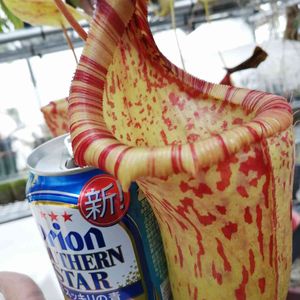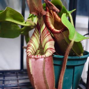 N.'Louisa' かなり丈夫で生育旺盛な流通種系の中では特に地味な交配種です😆 見た目通り耐陰性も高く、グリーンバナナみたいなシンプルで爽やかな色合いの袋が付きます👀 マニアックな方々の間でも一周、いや二周回って相当玄人好みだとは思います😏