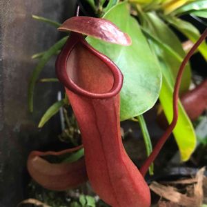 N.Rebecca Soper ネペンテス ・レベッカ 綺麗なピッチャーをつけてくれました。 ラミスピナとベントリの交配種だそうです。 シックな赤色と内側が白いのが綺麗です(^^)