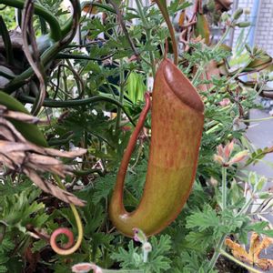 たまにこういう地味系ネペンで身を癒したくなります笑 青虫が何かに結構齧られていましたので今夜パトロールしてルイーザのエサになってもらいます。