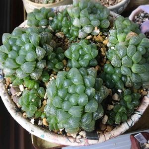 ハオルチア 軟葉系 オブツーサの株分け寄せ ベランダ放置が調子良さそうだから単品管理に戻そうか迷ってます😅