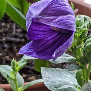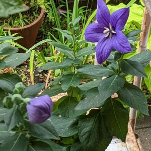 去年秋に買った桔梗、咲いてきました。蕾を撮るつもりがいつのまにか開き始めていました😅
