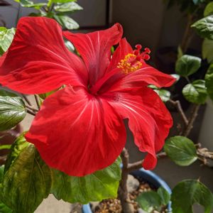 桔梗に気を取られていたら、植え替えたハイビスカスが咲いてました😅