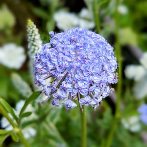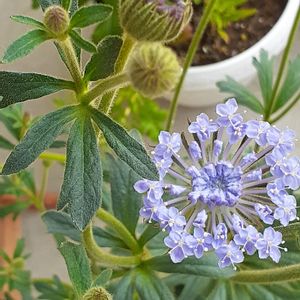 ブルーレースフラワーが、咲きました。 園芸店のPOPに、惹かれました🎨🪄 『ブルーのレースが広がります。 宿根草です。 溢れ種でも増えます』 色合いは、スカビオサに似ていますが、 花は大きく、直径8センチくらい。 今年は一株だけですが、 来年はオルレアと、 場所の取り争いになるかもね。