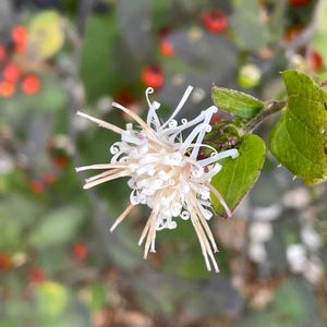 2025.04.18 山の中で打上花火が上がりました🎇 こちらコウヤボウキです。 キク科なのに木質という少しだけ珍しいタイプですね。 冬場綿毛になって残るのですがとても美しいです。 打上花火のようで線香花火のようでもあります。 花もこれまた花火のようで本当に面白いですね。 寒い冬でも夏を感じさせられました。