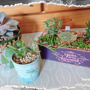 🪴 寄せ植え完了‼️ 最近は涼しいねぇ〜🍂 夜は寒いくらい🍁秋はすぐそこ⁉️ @tomo_ike_kinako ともちゃんのリメ缶💕 @hualiilii_succulentshop ふわりりさんのプレゼントの多肉ちゃんのシャルルローズ💕 リメ缶の色と多肉ちゃんの色がバッチリ😊✨ リメ缶とリメプラにも植え替えしたよ😁✨ 🪴
