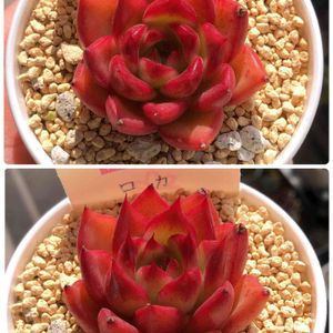 遅ーい遅ーい😳 娘からの母の日⸜🌷︎⸝プレゼント🎁 赤い多肉が欲しいとリクエスト✨ 見事に真っ赤っか♥️(*´艸`) ↖️レッドナイト ↗️ロカ 真ん中 モラン(おまけの子) 真っ赤で私の好きなツンツン系😍 ありがとう😌