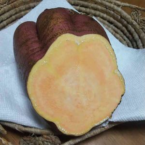 収穫した✨ ジャンボなお芋🙆 切り口が また、可愛らしい~💕 オレンジ色🧡 今から、ホカホカ芋に なりますヨ✨🤗✨