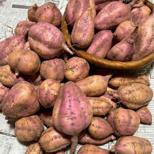 🤎🍠芋掘り💜 今日は、孫達と芋掘りしました!🍠 前日は、☔が降り芋掘りできないかと😟心配でした! 案の定、☔が降ったり止んだりのお天気!🥺😫 止んだ間をみて、傘☂をさしながら、収穫しました!🍠🍠🍠 でも、一株にだいぶお芋さんが、連なっていてくれて嬉しかったです! 7月中頃、🦡ムジナか?🦛猪に全て食べられてしまった場所に再度植えた🍠さつま芋です! 植えて120日経っていますが……😟 お芋さんが、出来ているかほんとに、心配でしたが、ひと安心! これだけ収穫できました!🙆🤩 熟成?させてから、焼き芋・スイートポテトなど、使用したいと思います! 2021.11.23.📸pic