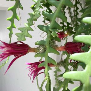 🏖️フィシュボーンカクタス🐠༄🐠༄🐠 5年前20cm根付き苗ふたつから去年初のお花2つ👏✨ 今年は蕾が5つと喜んでたら、、ポロリと蕾が落ち撃沈😅なぜ⁉️結果今日全部蕾落ちました〜( ; ; )👉👈 📸は去年咲いたお花です🌸 蕾は今年の😭さ〜よ〜な〜ら〜👋👋 葉っぱのジグザグに惚れ探したら『親木の花が赤系なので、クリプトセレウス アンソニアスと思う 』をネット購入した可愛いちゃん💕 🌧️梅雨が恋しい☔️暑過ぎますなー😎🍉