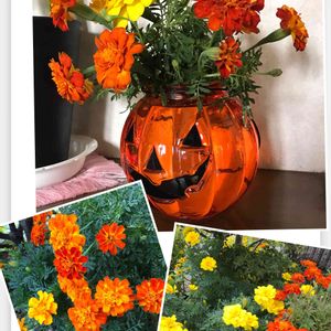 今年はマリーゴールド🧡💛が 賑やかに咲いています💕 昨年のハロウィン🎃の花びん 思い出して生けてみました🎶