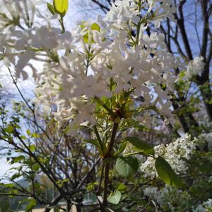 白のライラック 青空に向かって グングン伸びて 小さな蕾がいっぱ〜い 気持ち良さそう💚💙