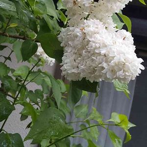 穀雨の中 白のライラックが咲いています 今年は、近年になく 5枝にも咲いています 花房が雨に打たれ重たげ・・・ その調子で来年も咲いてね🤗